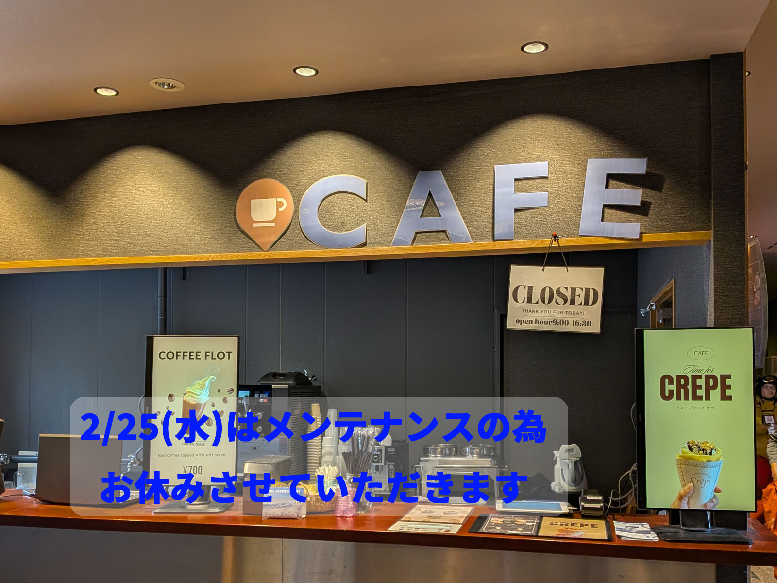 2/25(水)はメンテナンスの為、お休みさせていただきます。
