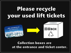 白馬さのさかでは、使用済みリフトチケットの回収・リサイクルを推進しております。